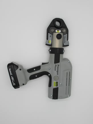 Raxofixパイプの施工は、専用プレス工具で締め付けます。